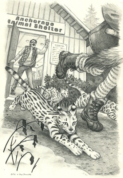 Gilly’s dad, an experienced Iditarod racer, is doubtful of Gilly’s goal, but she wastes no time proving him wrong. After all, she already has two cats, Lola and Shadow, and after a few fateful encounters, is able to recruit seven more intrepid felines. Gilly’s good fortune continues: her mom and dad will be away on vacation the very same time as the race!